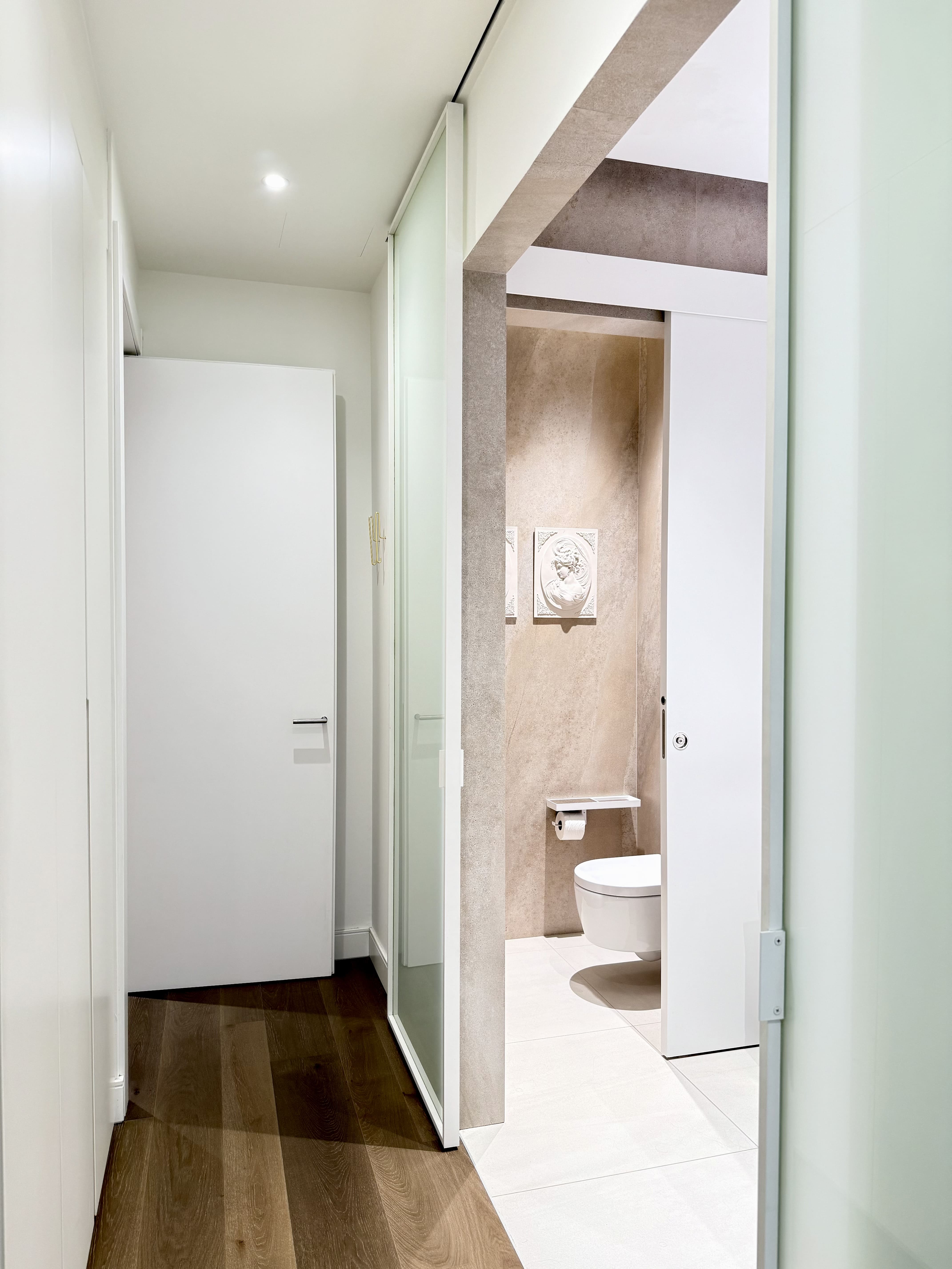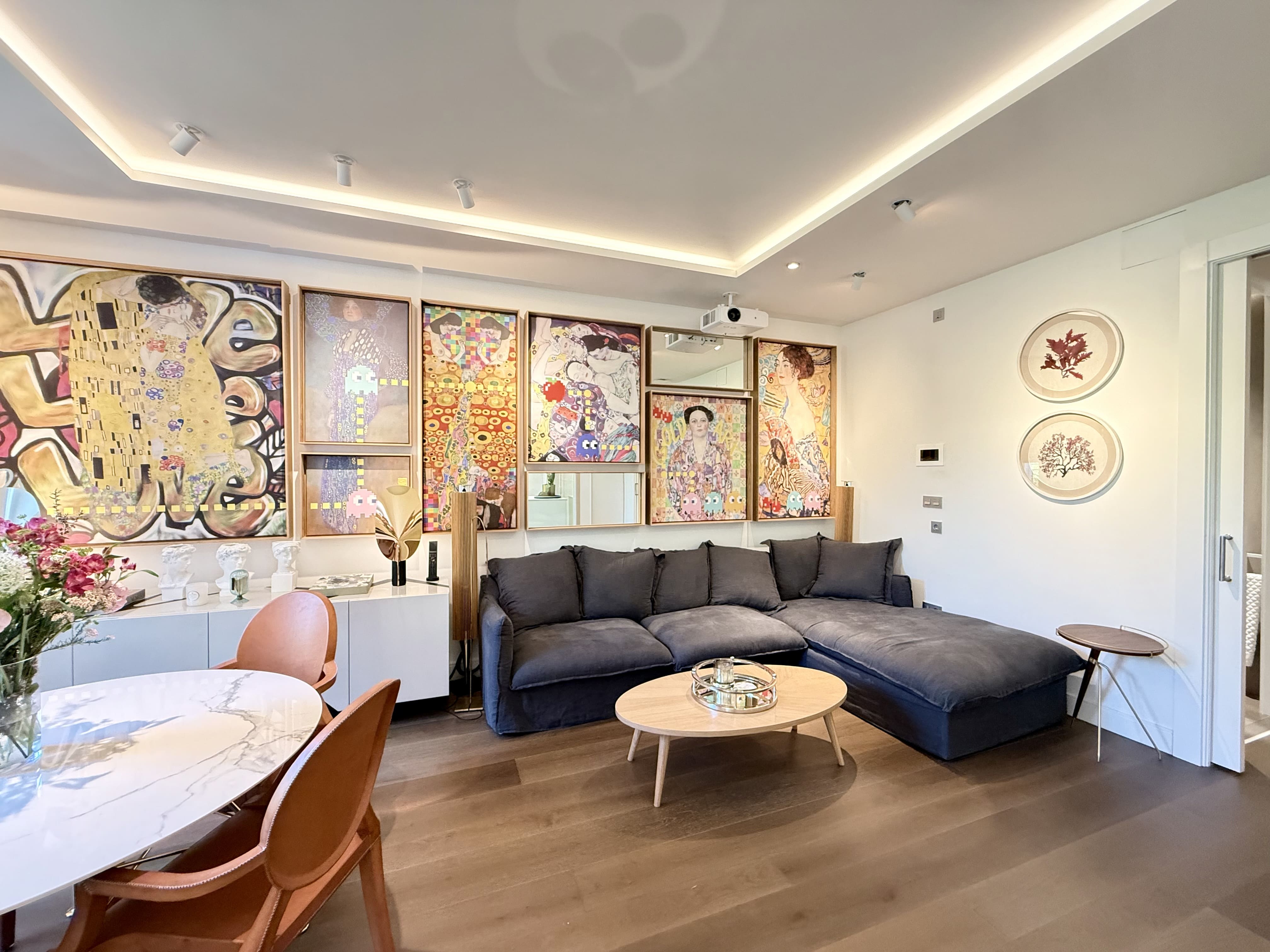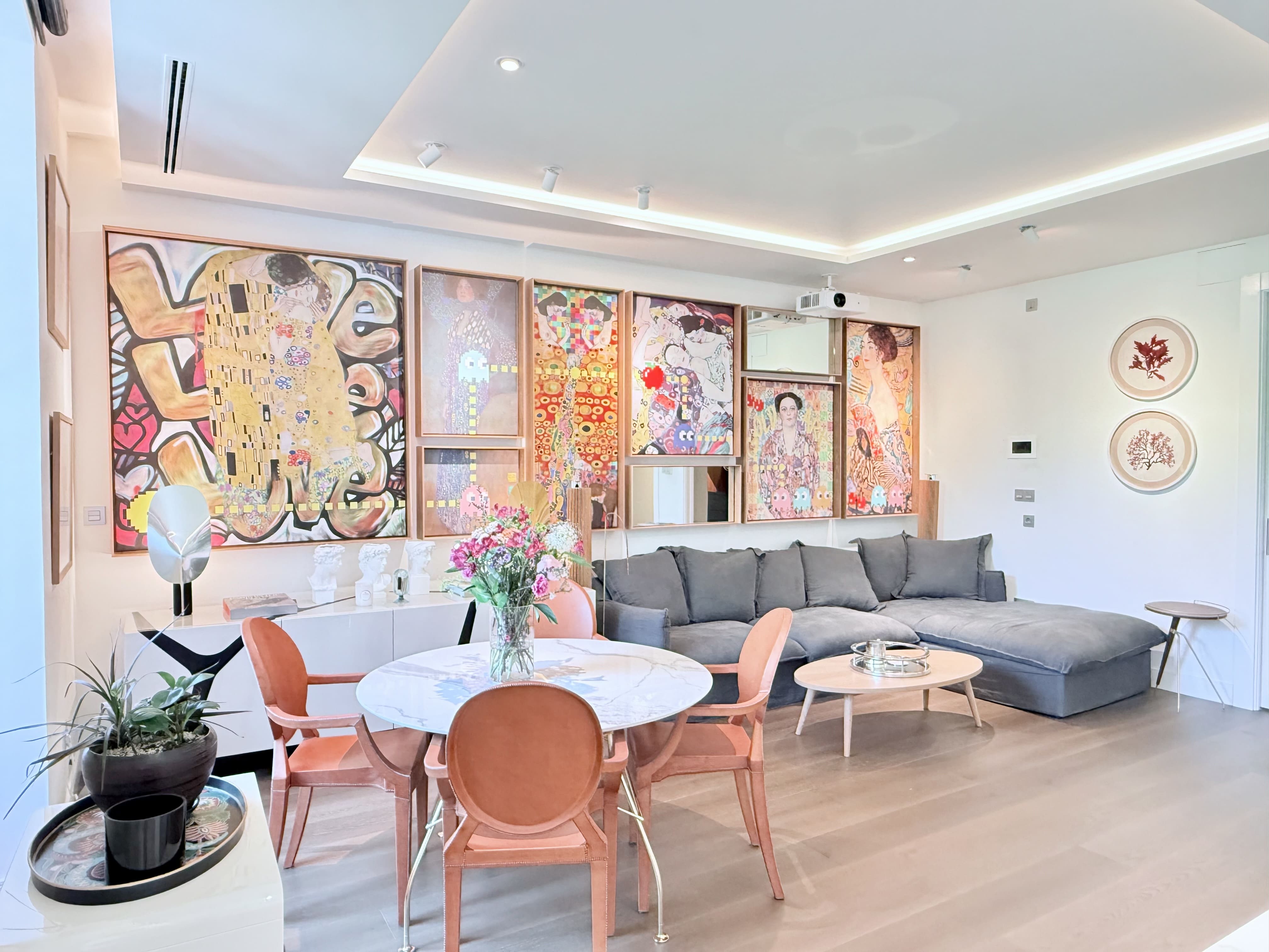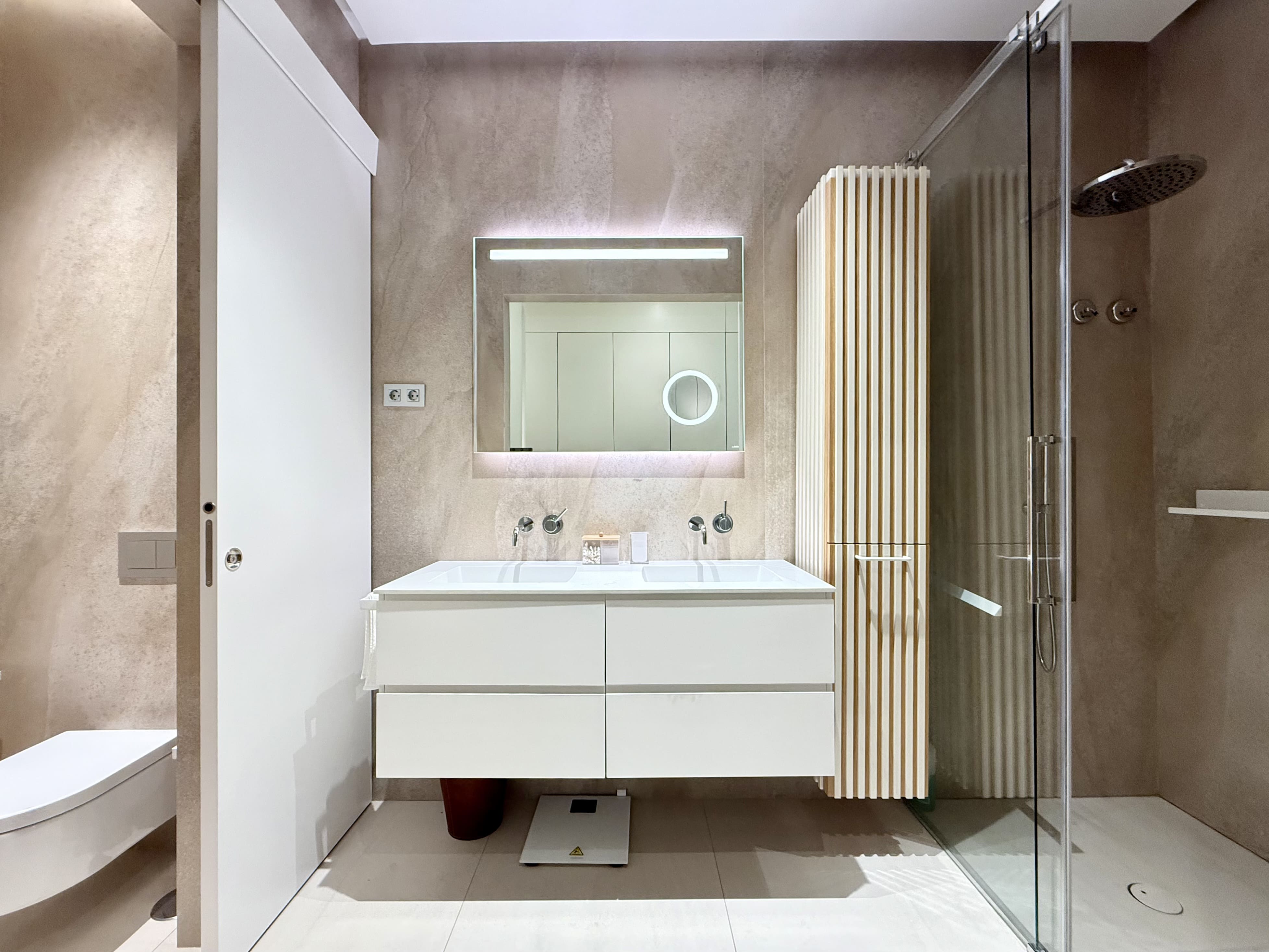 Upon entering, you are welcomed by a welcoming hall that leads to a bright living-dining room, adorned with balconies that provide natural light and city views. The kitchen, separated by glass, is a versatile space that adapts to your needs. With two large double bedrooms, each with its own en-suite bathroom, you'll have all the comfort you're looking for. A guest toilet adds a practical touch for your guests.