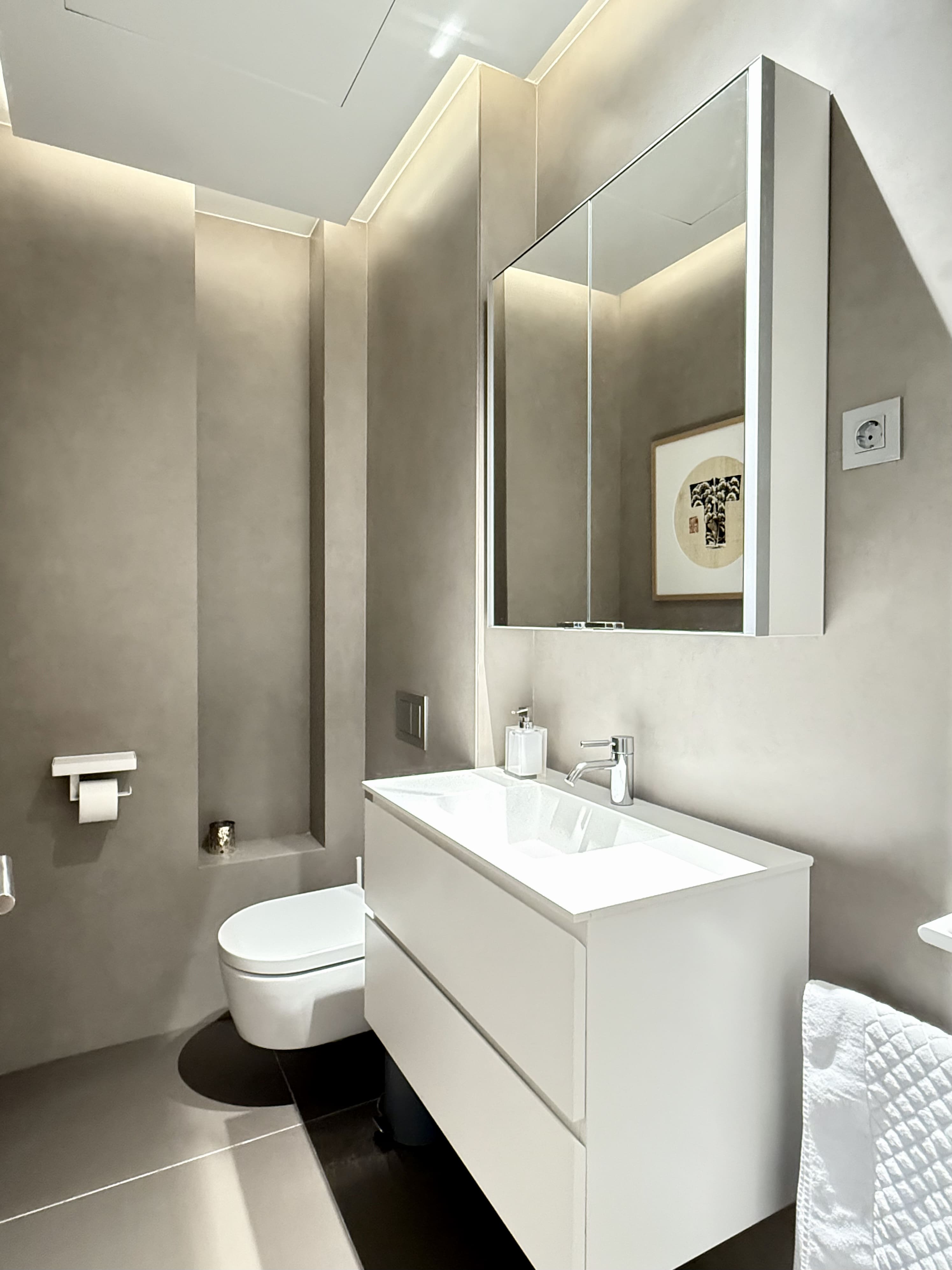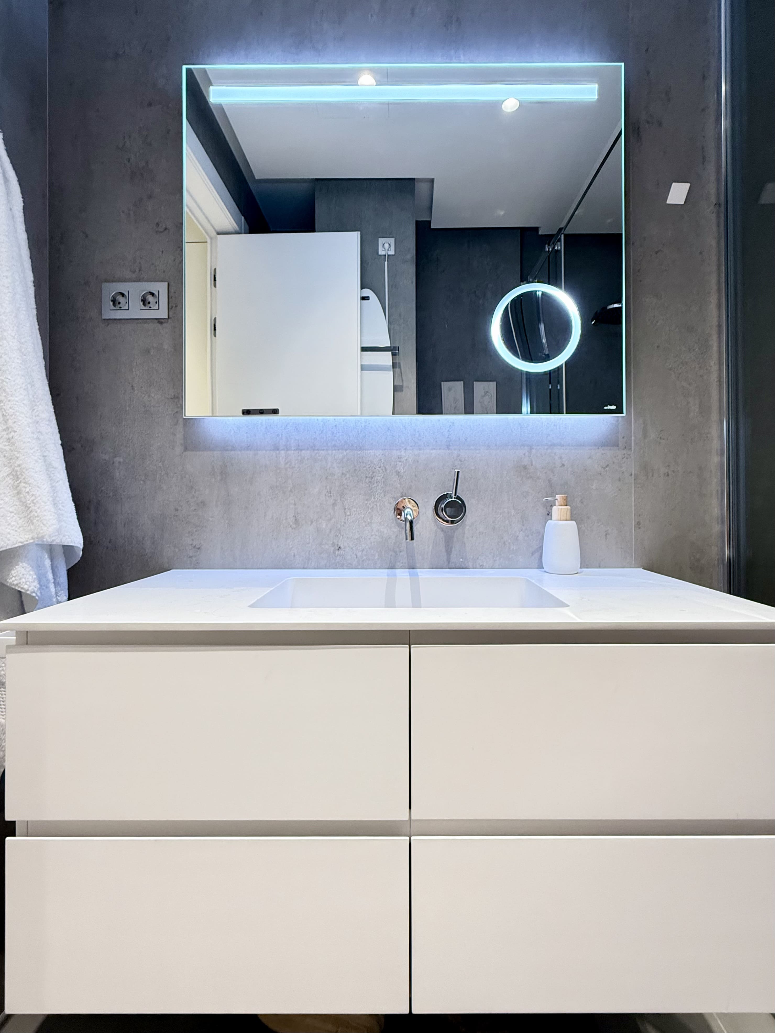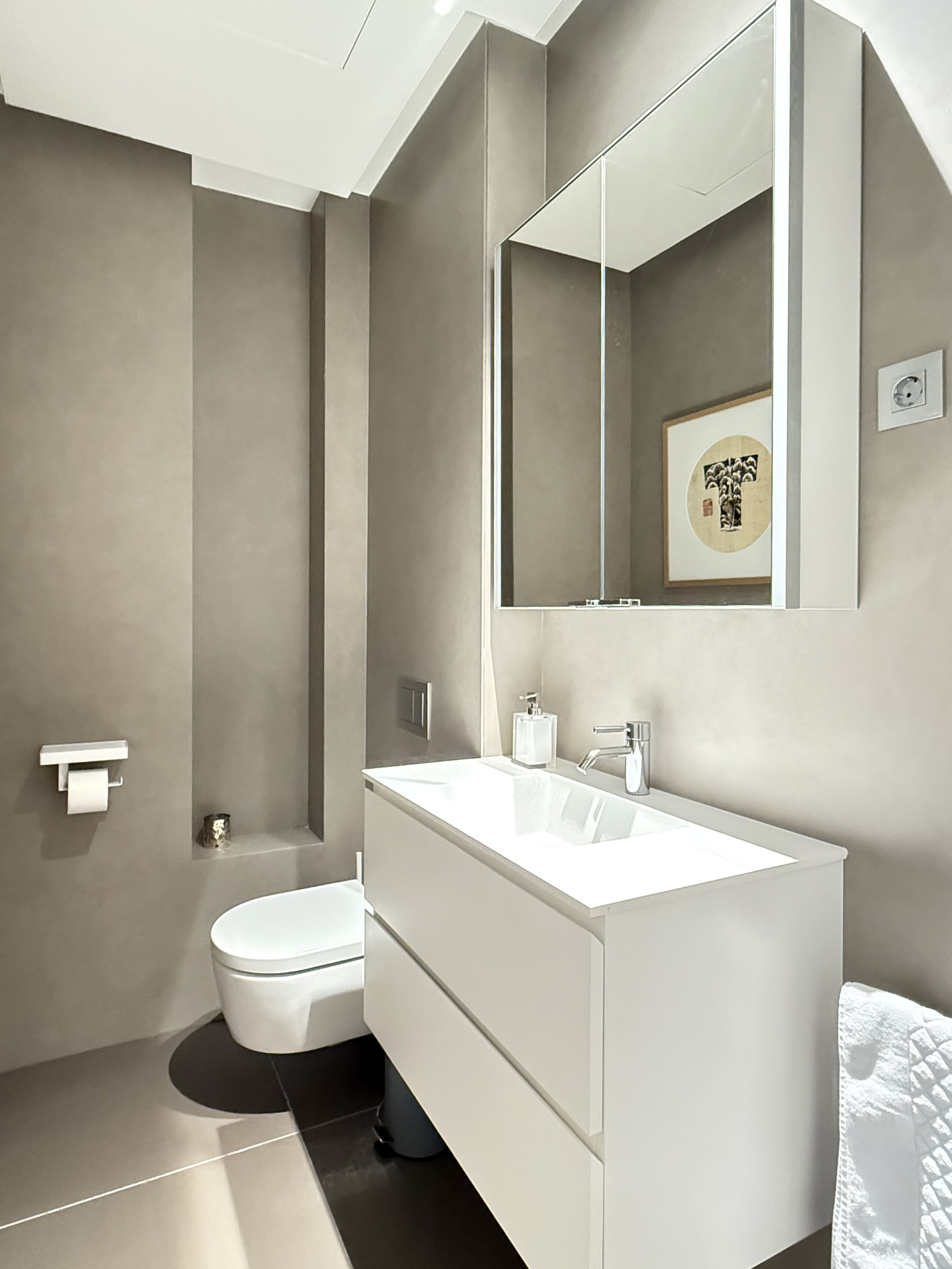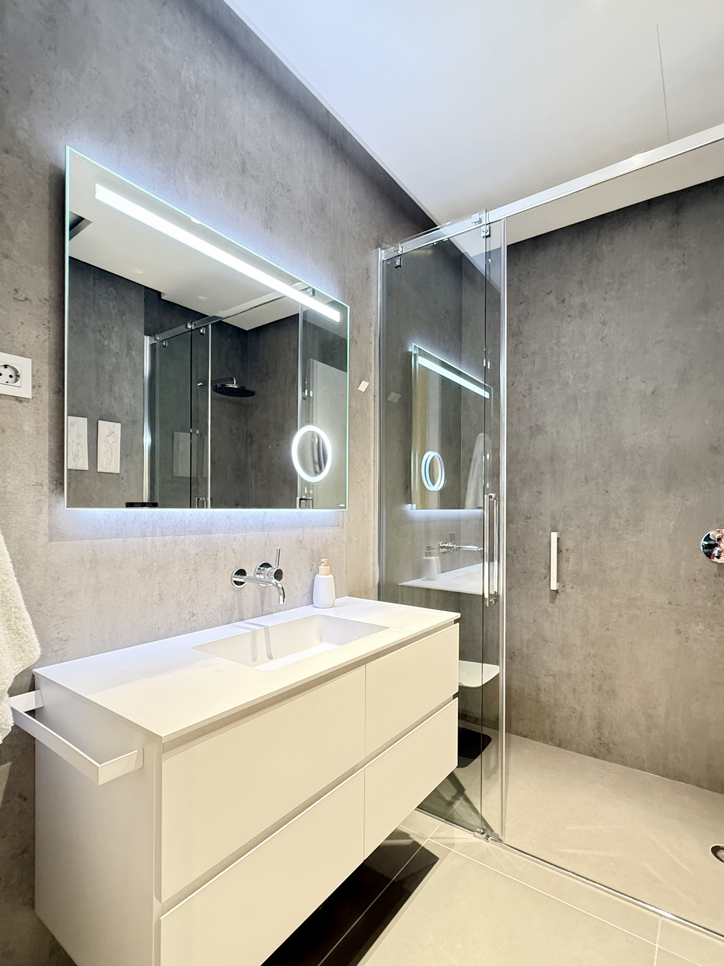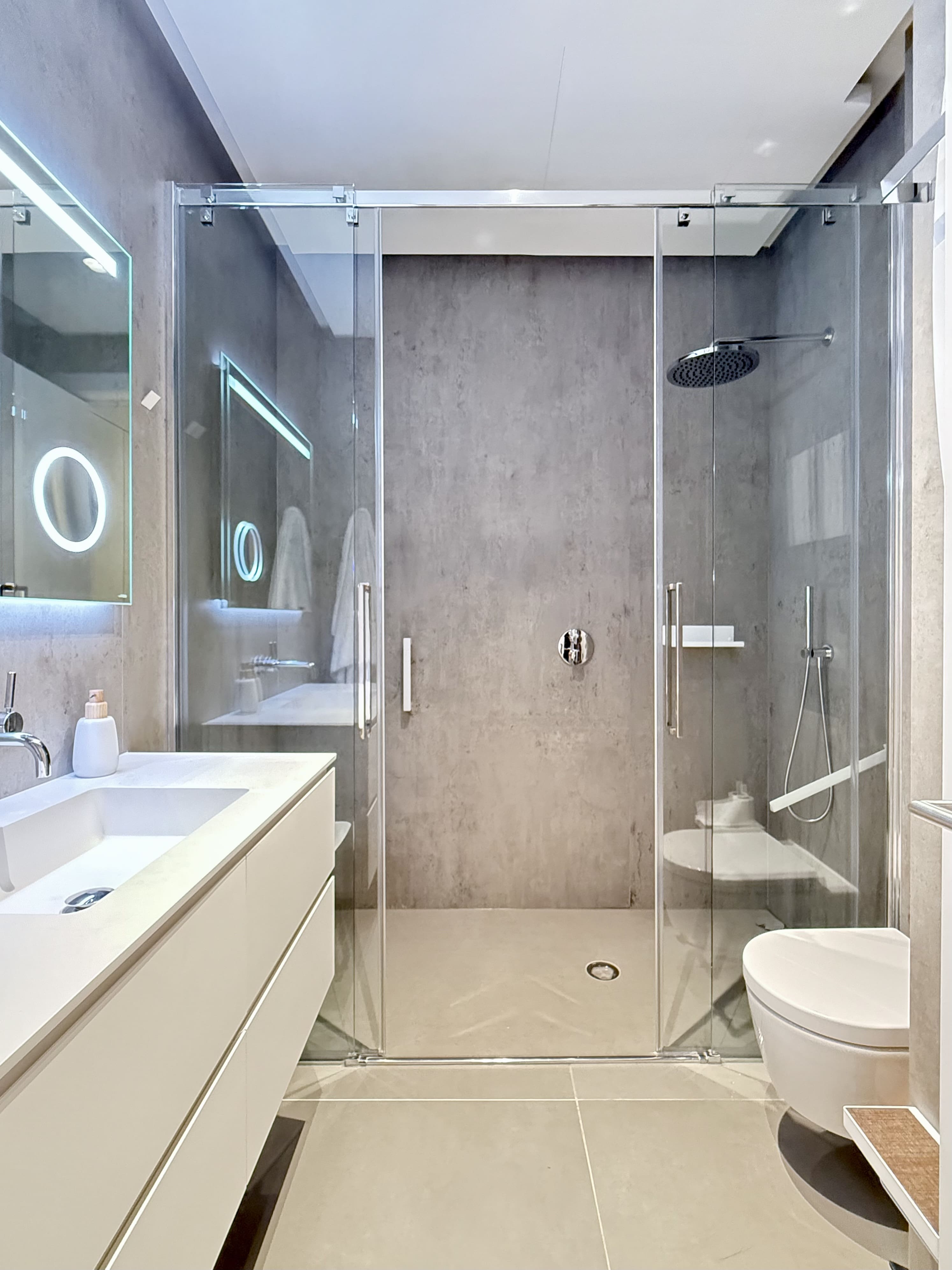 Upon entering, you are welcomed by a welcoming hall that leads to a bright living-dining room, adorned with balconies that provide natural light and city views. The kitchen, separated by glass, is a versatile space that adapts to your needs. With two large double bedrooms, each with its own en-suite bathroom, you'll have all the comfort you're looking for. A guest toilet adds a practical touch for your guests.