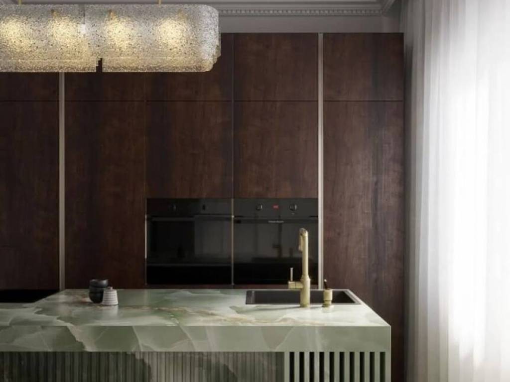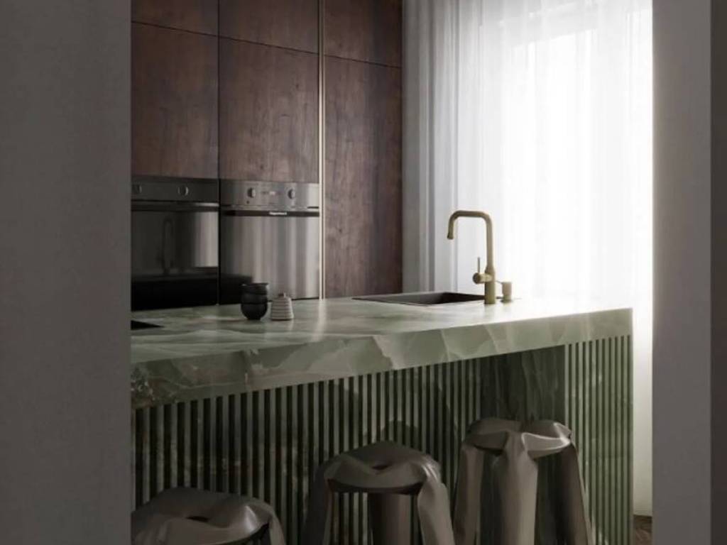 The property features three double bedrooms, the master bedroom featuring a luxurious en-suite bathroom. The separate kitchen is fully equipped and has a convenient laundry room. The three full bathrooms are finished with top-quality materials, ensuring a sophisticated and modern ambiance.